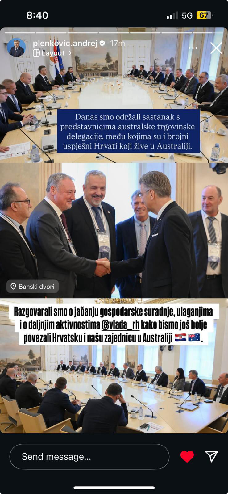 Australian Croatian trade delegation meeting with President of the government of the Republic of Croatia, Andrej Plenković. Great discussion across many industries, sharing Australian and Croatian collaboration and future planning strategies.