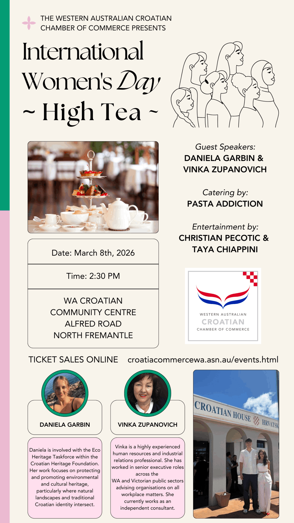 WA Croatian Community CentreSunday March 8th2:30pmAlfred RdNorth FremantlePh: 0409 395 315Tickets $45